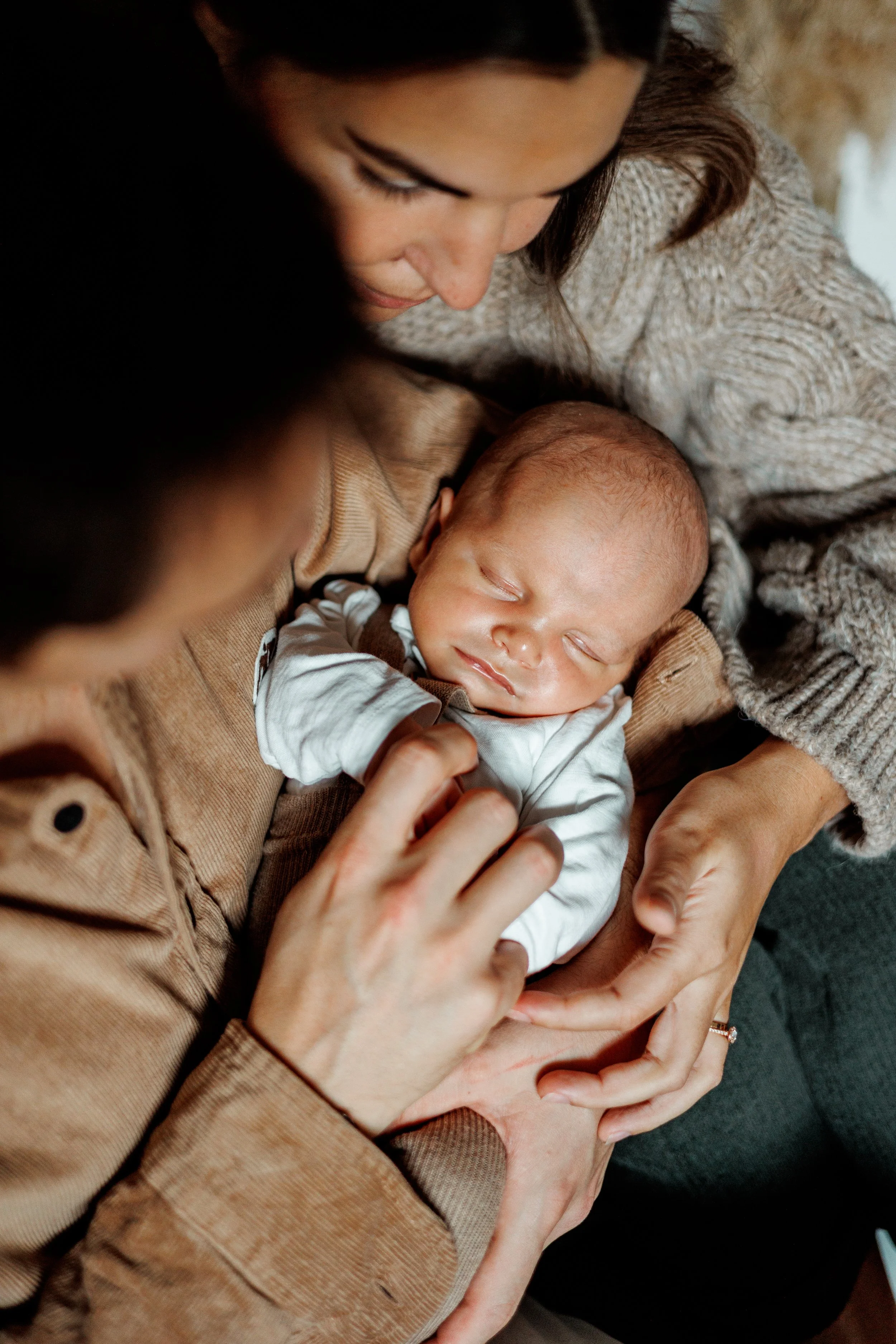 Je ne manipule pas votre enfant, ou très peu si cela est vraiment nécessaire. Je vous laisse le soin de vous en occuper afin de capturer votre proximité, vos gestes et les premiers liens qui se tissent entre vous.